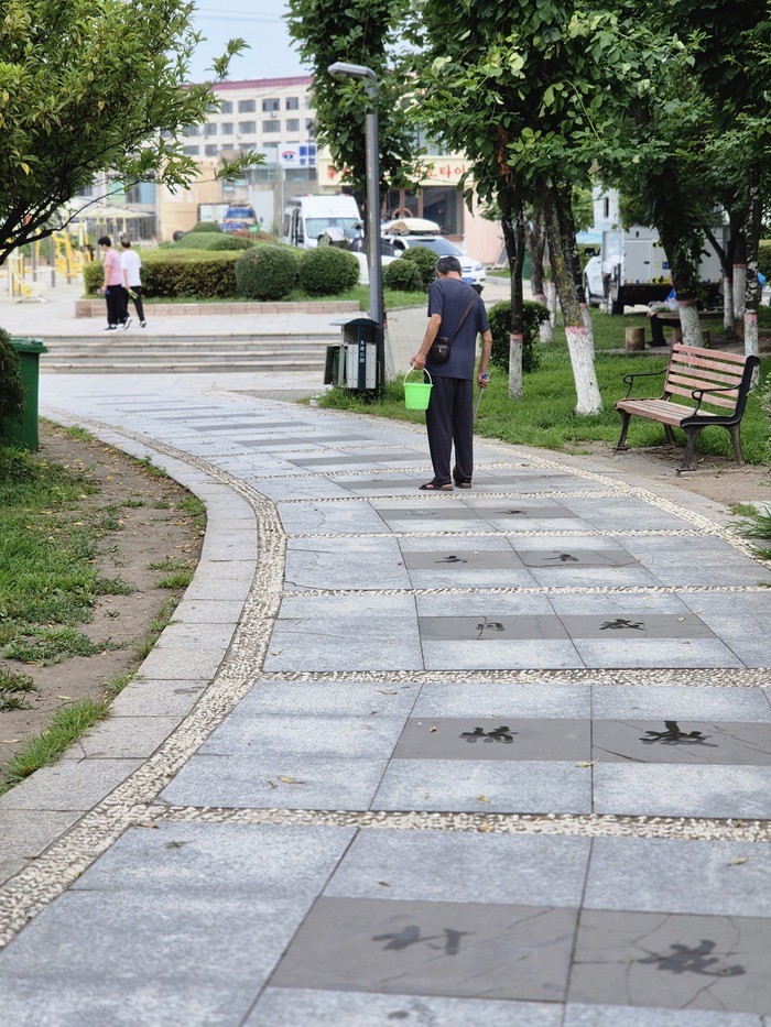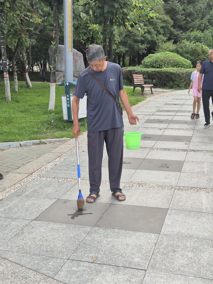 Во многих парках Китая, Японии и Южной Кореи можно встретить людей рисующих на плитке иероглифы обычной водой.