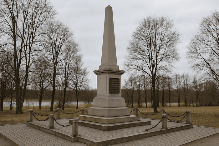 Место дуэли на Чёрной речке. Тогда это была окраина Петербурга, а теперь — сквер с обелиском на месте гибели поэта.