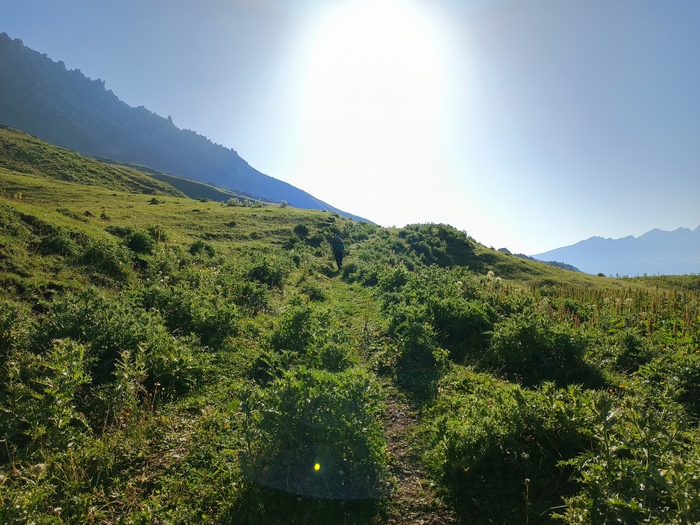 Ориентировались мы по GPS-трекеру, и хотя большую часть пути он работал хорошо, по утрам связь часто пропадала, и искать дорогу становилось труднее. Из-за этого мы после Тоторса чуть отклонились от трека и пробирались по высокой траве, что оказалось не так просто. А потом еще долго спускались вниз, из-за чего к вечеру мои колени чуть ли не скрипели.