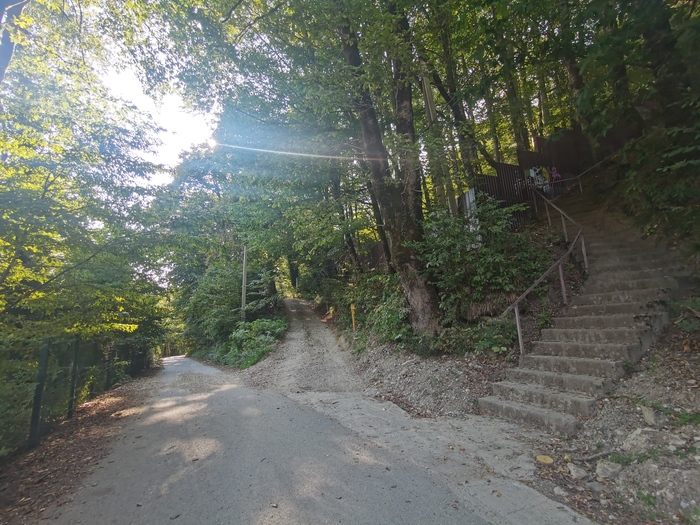 По пути к точке, помеченной на карте как кемпинг, перед нами снова появились огромные дома, отели, санатории. Парк. И снова 200р за вход. Снова резкие подъемы в гору и мною так нелюбимые лестницы.