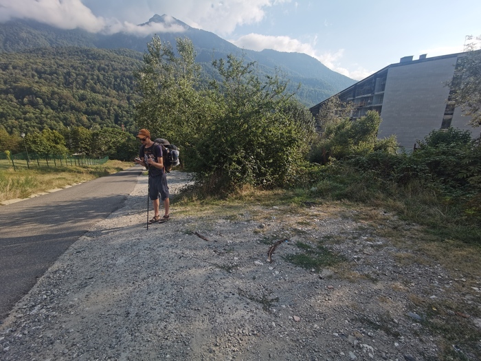 Не найдя природного источника воды, нам оставалось только идти до магазина, пополнить ее запасы и докупить продуктов на 4 дня. Пока поднимались, решили, что будет небезопасно ночевать у реки (с такими то соседями). Решили посмотреть отели, вдруг снова повезет с дешевым. На самом деле, я еще вчера смотрела и был вариант тоже около 1500, но сейчас его не было и самый дешёвый был за 1760р. Что-ж, заплатим лучше за безопасность, чем переживём нападение. Находился он прямо напротив той остановки, на которую мы приехали, так что нужно было снова идти обратно.
