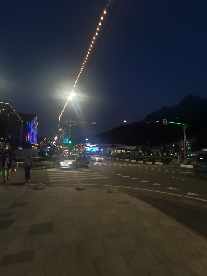 Сходили в магазин, хотя мне кушать особо не хотелось. Пока ходили, было ощущение, что мы в каком-то Лас-Вегасе с казино и ночной жизнью. Но ночная жизнь не для нас, так что мы поужинали, постирались, помылись, перебрали вещи, готовясь к завтрашнему походу и легли спать. В безопасности.