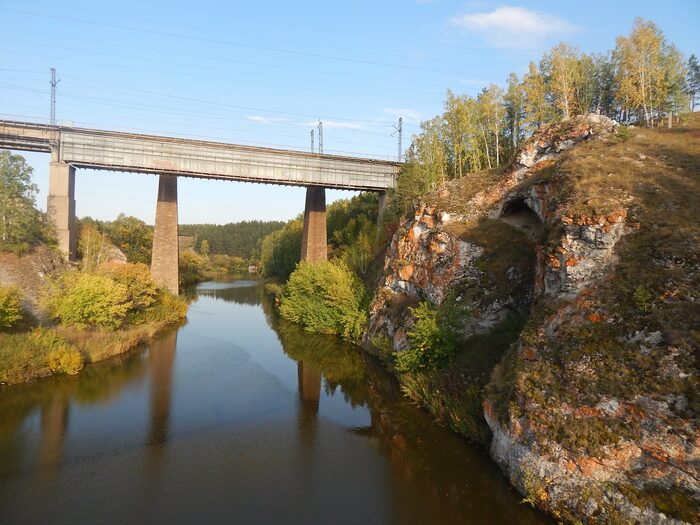 Если перейти на противоположный пологий берег, можно наблюдать сразу за двумя пассажирскими потоками – поездами, идущими из Екатеринбурга и в Екатеринбург,