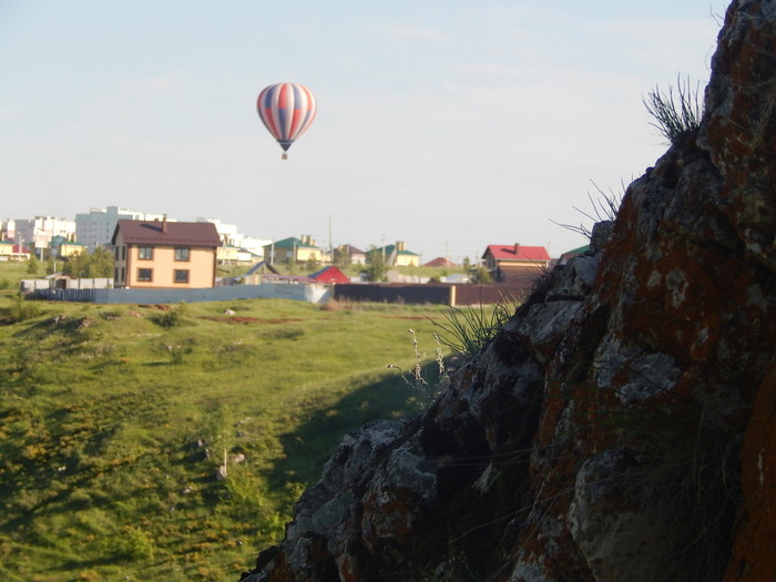 Воздушный шар вверху. (Да, в Каменске есть услуга и по прогулкам на воздушном шаре.)