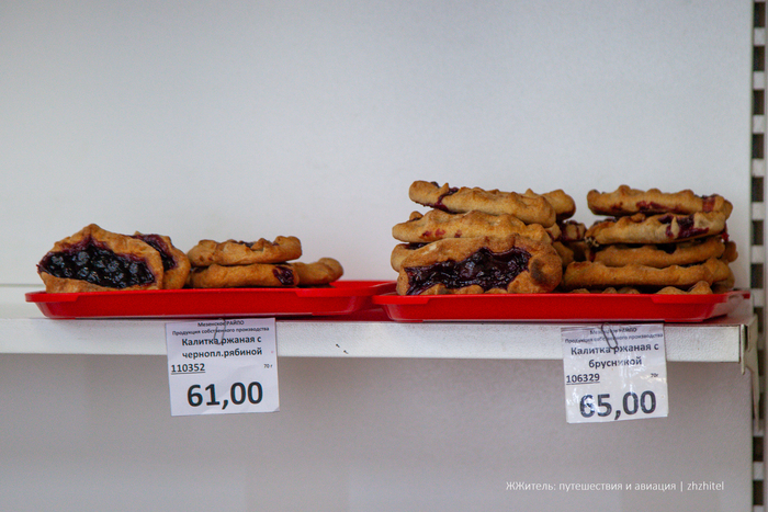 Также взяли пирожков. Они очень вкусные. Также можно купить полуфабрикаты, торты и местный хлеб по 79 рублей.