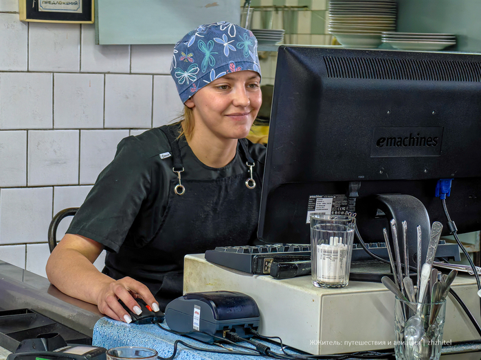 В кафе работают очень приятные и доброжелательные сотрудницы. В комментариях к посту про Мезень спрашивали, где работают жители. Вот, пример.