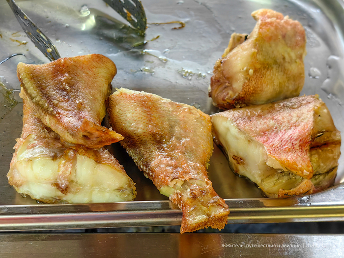 Жареный окунь — 86 рублей, камбала — 81 рубль, бедро куриное — 81 рубль, тефтели с рисом — 51 рубль. На гарнир греча за 32 рубля или рис за 24. Пюре — 36 рублей. Из напитков компот за 26 рублей, растворимый кофе за 22 или чай с сахаром за 8. Удивило, что чай без сахара стоит дороже, чем с сахаром.