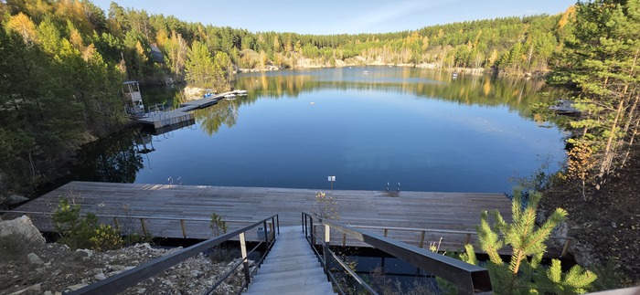 Вода в озере оказалась невероятно прозрачной, не уступающей Байкалу. Сегодня это центр дайвинга: здесь тренируются спасатели МЧС и любители, для которых спуск к подводному экскаватору - особый ритуал.