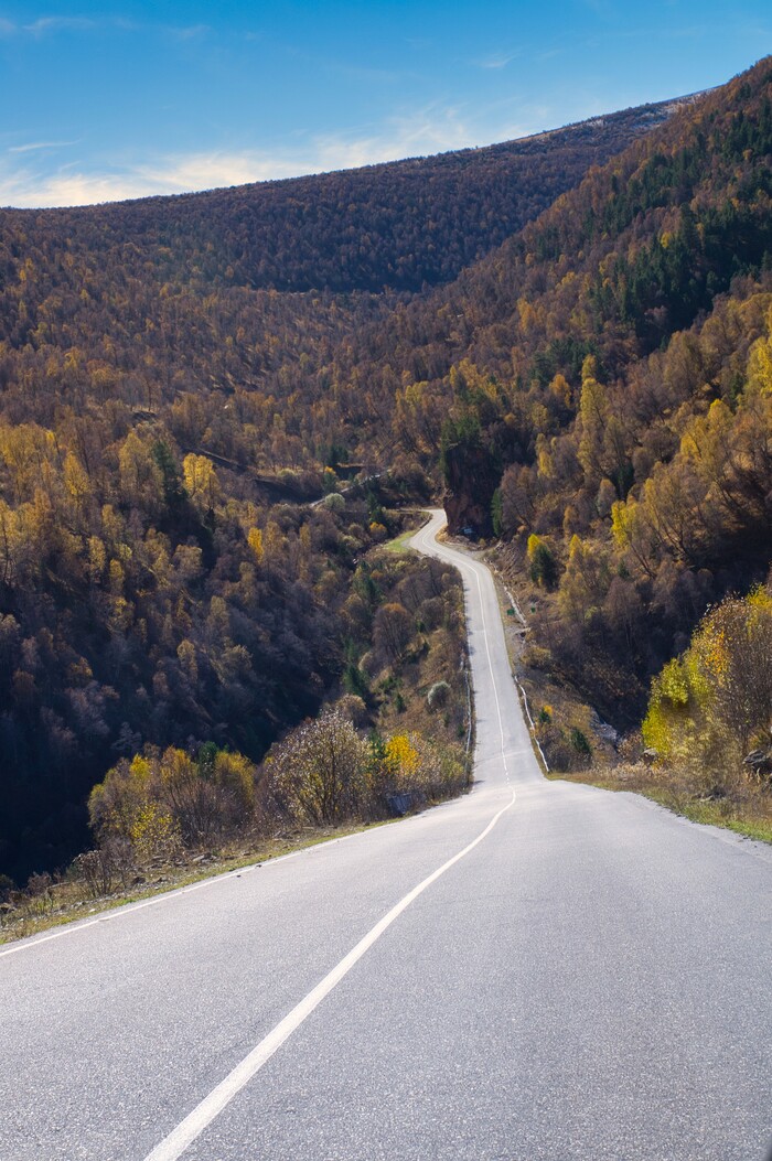 Затяжные спуски - в данном случае это реально очень затяжные спуски, и если не умеете тормозить двигателем, то легко и быстро сможете "сжечь тормоза". Так что, прежде чем ехать, оцените свои навыки вождения. Дорога хоть и хорошая, но сложная - горные серпантины сами по себе вещь непростая, а высокогорные - тем более.Зимой, с ноября по апрель-май, дорога перекрывается по погодным условиям. Все фото ниже сделаны во второй половине октября в 24-25 гг. На мой взгляд, это самое "красивое" время. Но вот с погодой - откровенная лотерея.