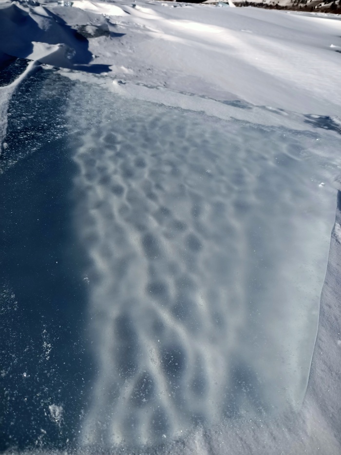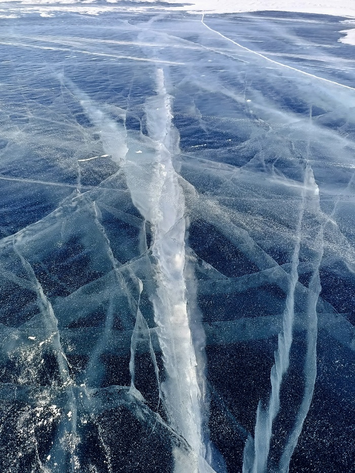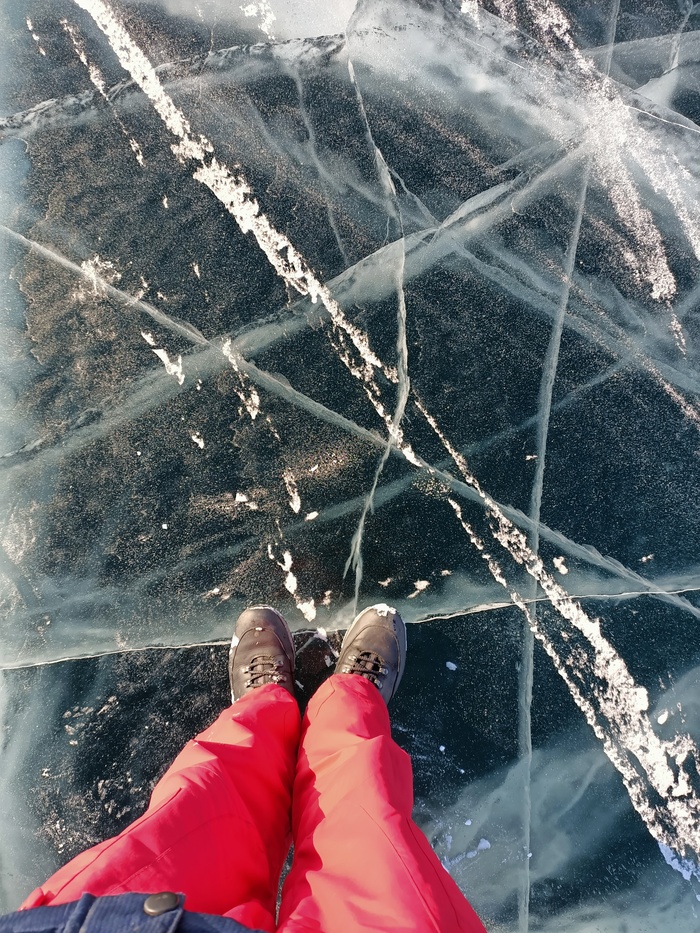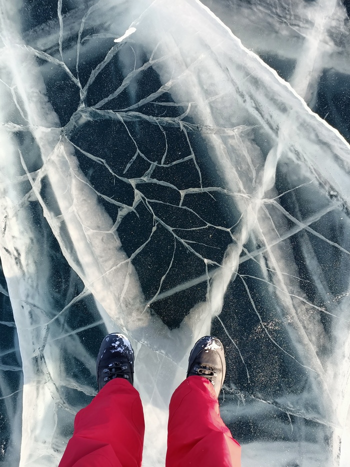 Далее, после торосов, нас высадили на участках с чистым льдом. Желающие начали кататься на коньках. Я по своей привычке ушел подальше от людей, нашел большие участки открытого и красивого льда. Видел как лыжников, так и велосепидистов