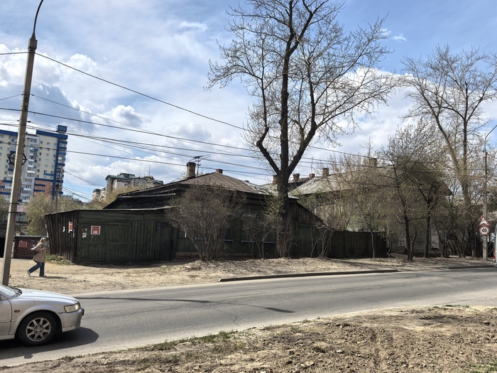ветхое жильё частного сектора и на дальнем плане новостройки
