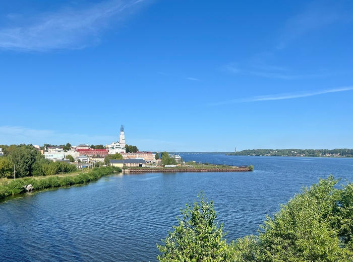 В Кинешме тоже есть колокольня, и достаточно высокая. Но она на реставрации, поэтому виды сильно страдают, поскольку сама башня затянута в строительные леса.