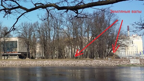 Эти самые валы частично сохранились до сих пор и отлично просматриваются с Елагина острова.