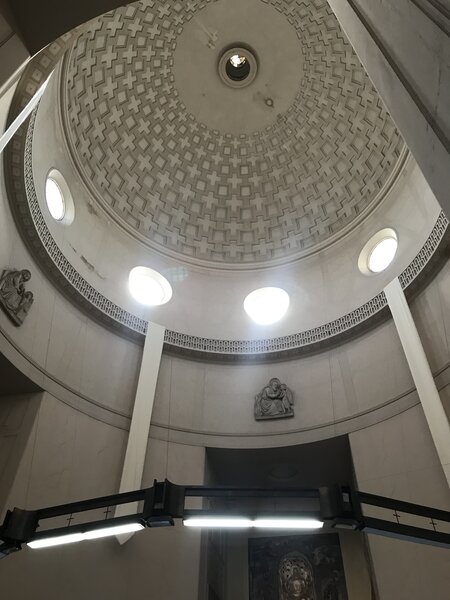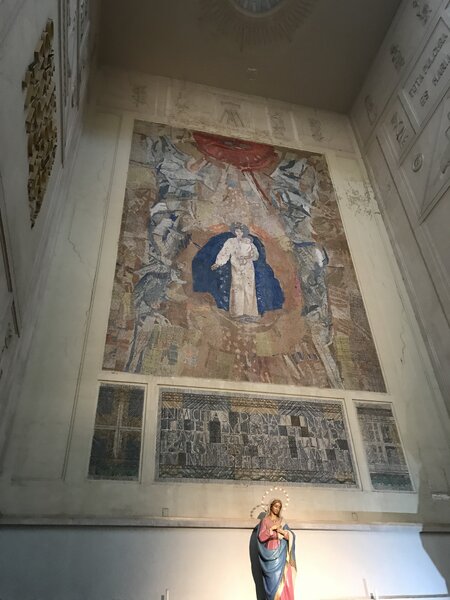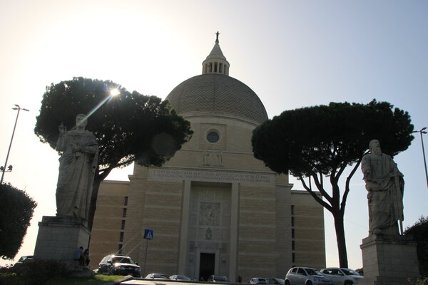Следующей моей целью стал собор Святых Петра и Павла. Он также проектировался по заказу Муссолини, и его строительство началось в том же 1939 году. На время войны работы были заморожены, и завершили возведение храма только к 1955 году. Этот собор явно должен был стать новым духовным оплотом для «новой Италии», и по многим параметрам он словно соревнуется с собором Святого Петра в Ватикане.