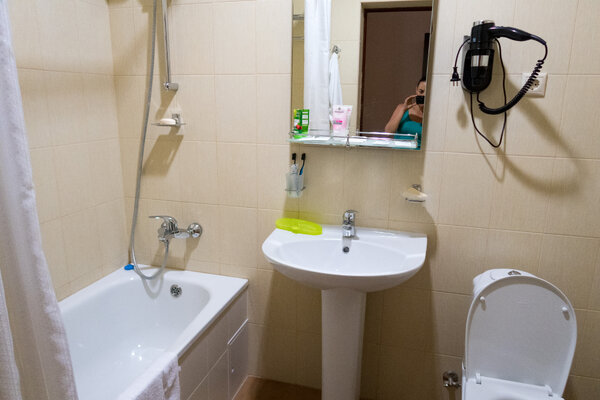 Отель находится недалеко от аквапарка «Наутилус» и работает круглый год. Наш визит пришелся на май.