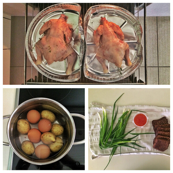 Причём подошли к делу со всей серьёзностью, поставив цель полностью воссоздать типичное меню из плацкартного вагона: запечённую курицу, варёные яйца с солью в спичечном коробке, солёные огурцы, сало, чёрный хлеб, зелёный лук и картошку в мундирах.