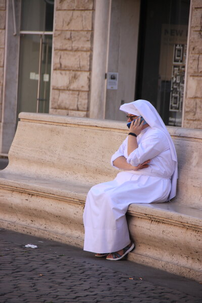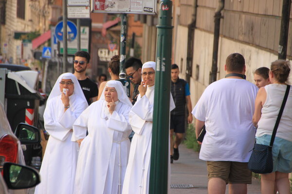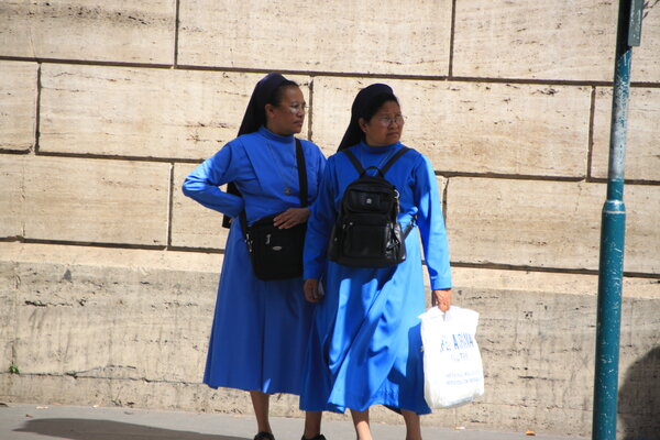 Ватикан, как магнит, притягивает католиков со всего света, поэтому здесь часто встречаешь людей в монашеском облачении. Интересно, что одеяния различаются по цвету и крою. От чего это зависит? Наверное, от принадлежности к разным орденам и ветвям внутри церкви.