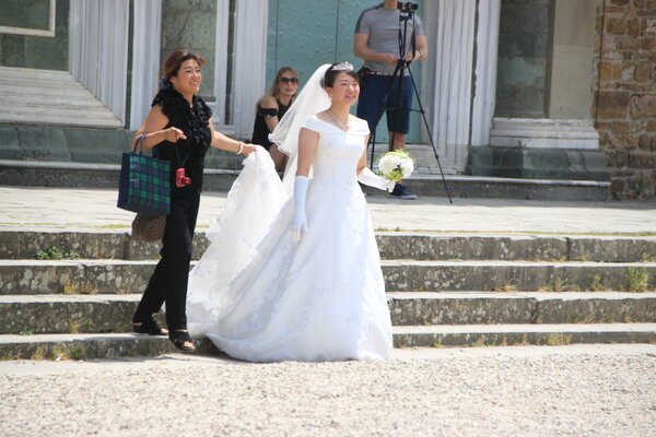 Среди туристов особенно много китайцев — кажется, их больше всех и в Италии, и, наверное, во всей Европе. Мне несколько раз довелось увидеть свадебные фотосессии китайских пар. Выглядело это очень красиво и наглядно демонстрировало, что материальное благополучие многих жителей Поднебесной позволяет им совершать такие масштабные поездки.