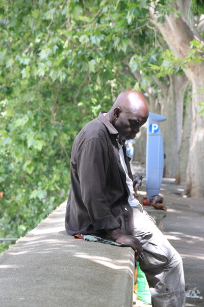Я издалека приняла этого человека за скульптуру — спал сидя