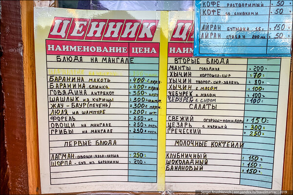 Большой чайник ароматного чая на горных травах с мёдом обойдётся всего в 100–150 рублей: здесь не принято брать 300–500 рублей за пол-литра кипятка с парой пакетиков, как во многих туристических местах.