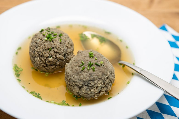 Среди местных специалитетов есть и суп с печеночными кнедлями — леберкнедльзуппе. Летней жарой мне совсем не хотелось пробовать наваристый суп с печенкой, хотя я заметила, что местные жители едят его с большим аппетитом и в ресторанах, и на уличных рынках.