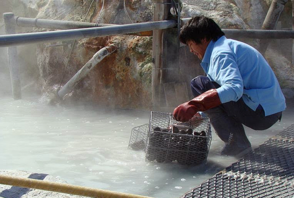 Согласно легенде, одно такое яйцо может продлить жизнь на 5–7 лет. Поэтому в долине их продают повсюду — обычно упаковками по пять штук за 500 иен. Тем, кто хочет увидеть процесс приготовления, стоит подняться на высоту более 1000 метров над уровнем моря. Яйца сначала час варят в родниковой воде при 80°C, а затем на 15 минут помещают в корзинах в пар температурой 100°C.