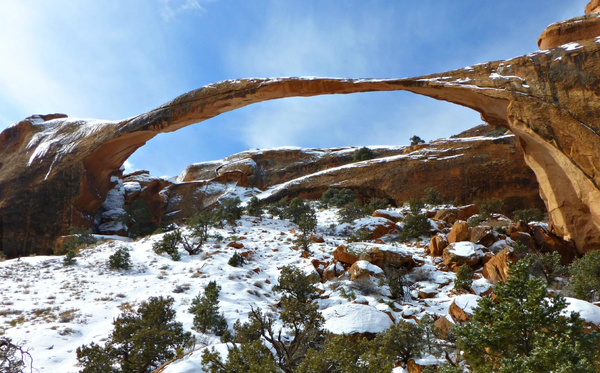 Хотя эта арка занимает лишь пятую строчку в мировом рейтинге, её судьба вызывает гораздо больше тревоги, чем у лидеров. Первые четыре арки-гиганта расположены в Китае и имеют иную геологическую природу. Например, рекордсмен — «Мост Фей» (Fairy Bridge) — был проточен рекой Булиу сквозь толщу известняка. Китайским исполинам, судя по всему, ничего не угрожает, а вот каменные своды в Юте неумолимо разрушаются. Только за последние полвека здесь обрушилось более 40 арок. Поэтому путешественники спешат увидеть эти хрупкие памятники, которые в любой момент могут кануть в лету.