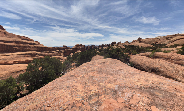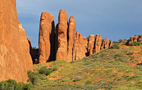 А вот арка-рекордсмен, Ландшафтная, находится в районе под названием Сад Дьявола (Devils Garden). Это место — must-see для любого посетителя. Здесь можно увидеть не только арки, но и острые шпили, а также скопления узких каменных стен, которые называют «плавниками». И арки, и эти «плавники» — результат многовековой эрозии. Они формируются, когда дождевая вода медленно, но верно размывает песчаник, прорезая в нём вертикальные трещины.
