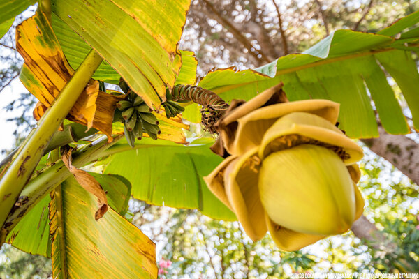 Внешне оно напоминает пальму, но с ботанической точки зрения это вовсе не дерево, а гигантская трава. Чтобы познакомиться с ним поближе, не обязательно лететь на другой континент. Достаточно доехать до черноморского побережья Кавказа, где южнее Туапсе бананы чувствуют себя вполне комфортно и встречаются довольно часто.