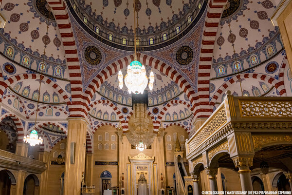Мы провели внутри довольно много времени, внимательно рассматривая детали этого архитектурного шедевра. Классическая османская стилистика здесь гармонично переплетена с традиционными чеченскими орнаментами.