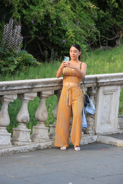 Смартфон — неизменный спутник современной девушки. В Риме это особенно заметно: они что-то пишут, разговаривают, а чаще всего — снимают себя на камеру телефона, находя идеальный свет и фон среди древних руин.