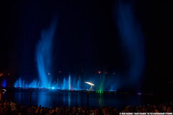 Мы приехали в Грозный, чтобы посмотреть знаменитое шоу поющих фонтанов. Со мной были жена и друзья. Мы не ожидали такого ажиотажа: вся площадь вокруг фонтанов была заполнена зрителями, и нам пришлось наблюдать за представлением, стоя в толпе.