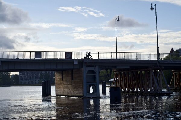 Когда мы приблизились к Володарскому мосту, проснулись и «Метеоры», которых я опасался больше всего. Именно под этим мостом мы впервые столкнулись с сильным течением. С большим трудом нам удалось пролезть между опорами, вокруг которых клокотала и бурлила невская вода. После моста наша скорость немного возросла, но все равно оставалась небольшой. Сама Нева здесь стала уже. Определенно, с этого места условия начали усложняться.