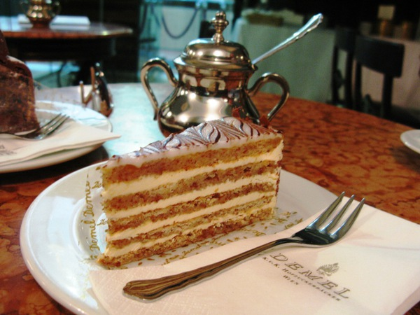 Свой гастрономический тур я начала с Захера, ставшего настоящим символом австрийской кухни. О нём говорят все путеводители, а в кафе «Захер» даже водят экскурсии — отличный пример того, как создать успешный бренд. Этому десерту почти два века, и на нём сколотили целое состояние. Кстати, в России по его подобию когда-то создали знаменитый торт «Прага», который я обожала в одноимённом ресторане, но, увы, теперь он стал историей.