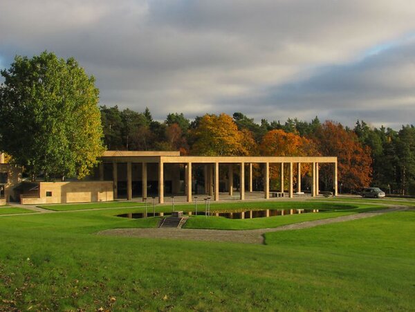 В результате получился не просто парк с могилами, а целостное произведение ландшафтного искусства. Сосновый лес, извилистые тропы, тихий пруд, холмы, комплекс из трёх часовен с прилегающими садами — каждая деталь здесь тщательно продумана. Даже крематорий, который мог бы выглядеть чужеродно, стал органичной частью пейзажа. Всё создаёт ощущение естественности, хотя за этой «природностью» стоит кропотливая работа архитекторов.