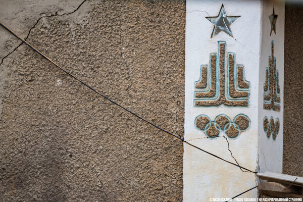 На одном из домов до сих пор сохранилась символика московской Олимпиады 1980 года — трогательная деталь, сразу задающая тон всему впечатлению.
