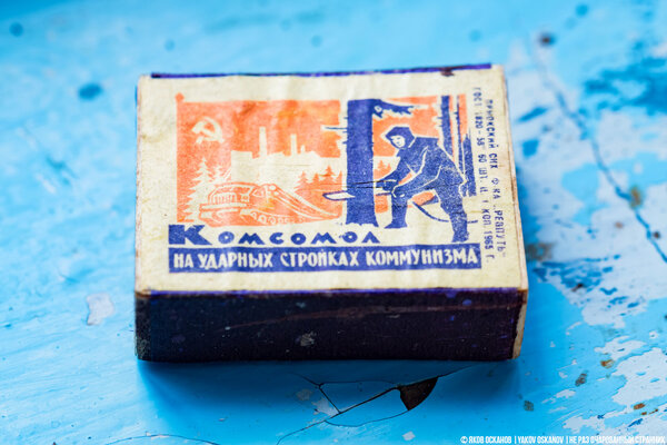 А вот и находка для коллекционера — коробок спичек из шпона, датированный 1965 годом! Представляете, сколько лет он здесь лежит?