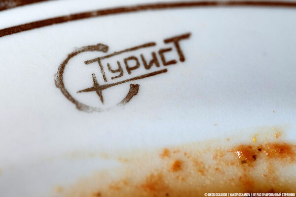 Простая жестяная тарелка с эмалевым покрытием. С такой посудой сразу чувствуешь себя олдскульным туристом где-нибудь у костра.