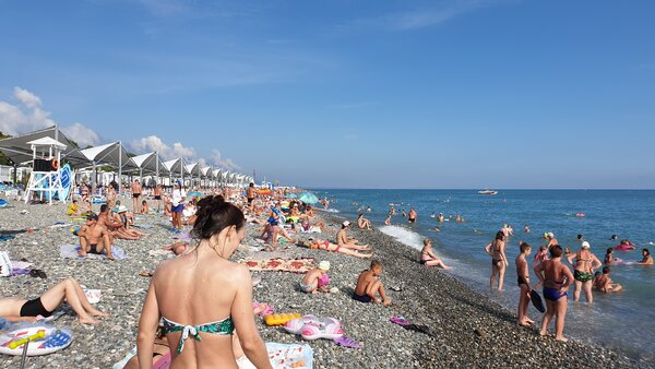 В этом репортаже я хочу показать вам, как выглядит один из пляжей Адлера под названием «Бархатные сезоны». Интересно, что это самый южный пляж Черного моря в России.