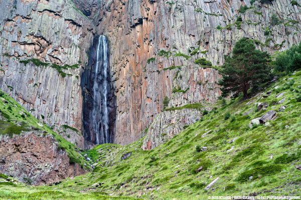 Масштабы водопада сложно оценить — величественные горы вокруг как будто «съедают» его истинные размеры.