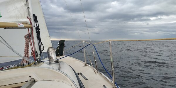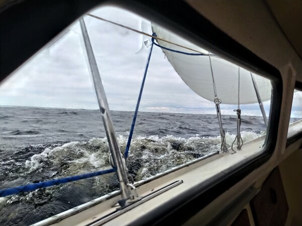 Несмотря на разбушевавшуюся стихию, паники не было. Сидя в накрененной, сырой каюте, под удары крутых волн о борт, мы лишь снова и снова повторяли: «Да, это тебе не тримаран!». Страха не испытывали — было просто очень неуютно, холодно и промозгло.