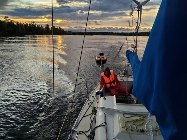И вот она, долгожданная Свирь. Здесь для нас начинается новый, пусть и небольшой, этап путешествия. Мы бесконечно рады, что сложный ладожский переход остался позади. Я продрог до костей и уже предвкушаю, как растоплю печку. Мы направляемся на стоянку в Загубскую губу — место, на первый взгляд, довольно странное для остановки на килевой яхте. Но даже в полной темноте мы забрались туда без особых проблем, но об этом — в следующий раз.