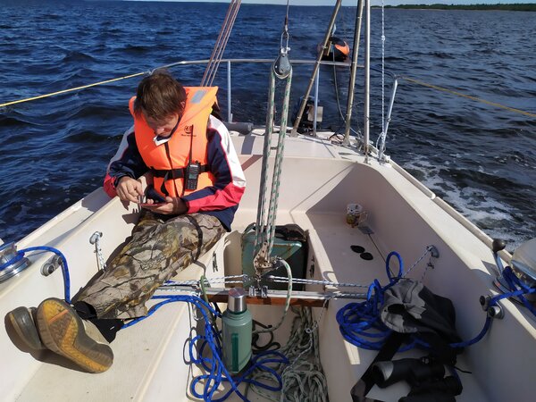 Признаю, автопилот потребляет электричество. При ветре нам помогает ветряк, в других случаях — мотор. Но я ещё раз повторю: это must-have, который нужно ставить на любую лодку. Особенно в нашем случае, ведь моя спутница Наталья не слишком сильна в навигации или, например, в работе с парусами. Теперь я один могу ставить и убирать паруса, выполнять сложные манёвры. Я могу даже спокойно поспать подольше, оставив Наташу на вахте, не беспокоясь, что она сильно устанет и совершит ошибку.