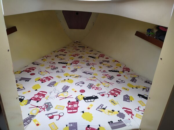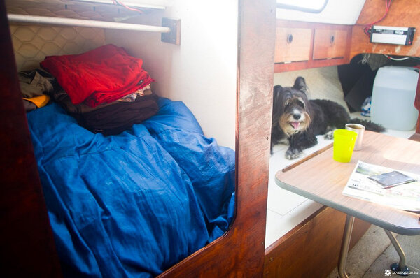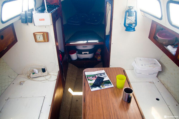 Сделали новый столик, сшили удобный и красивый матрас, добавили крючки на шкафы, заменили пластиковую ёмкость на нормальное мусорное ведро и другие мелочи, которые делают жизнь на борту удобнее.