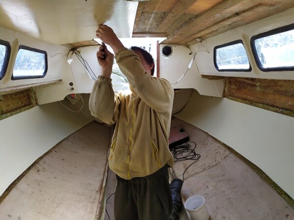 Сразу отмечу, что не все задумки удалось реализовать. Например, мы мечтали встроить в каюту кухонную раковину и установить карданный подвес для плитки, чтобы можно было готовить даже во время качки или сильного крена. К сожалению, на эти доработки не хватило времени. Кроме того, весной мы обнаружили, что подмачтовый бимс прогнил, и пришлось срочно заняться его заменой — об этом мы уже рассказывали отдельно.