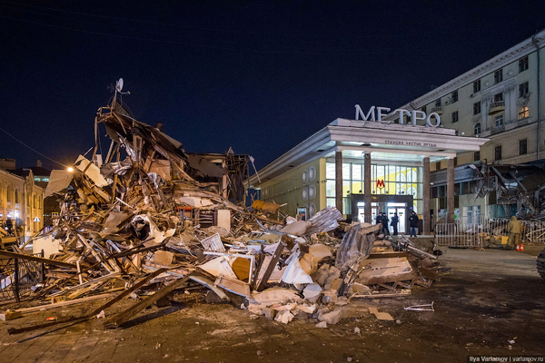 Снос павильонов у метро «Чистые пруды». Фото Ильи Варламова.