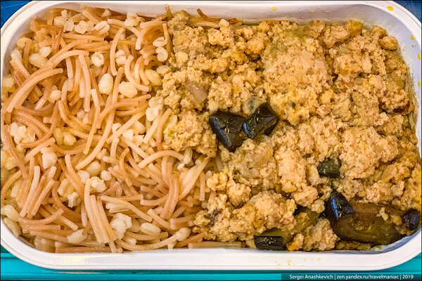 Стюардесса поинтересовалась: «Курица или говядина?» Я уточнил, с чем они подаются. Она объяснила: курица — с макаронами, а говядина — с перловкой.