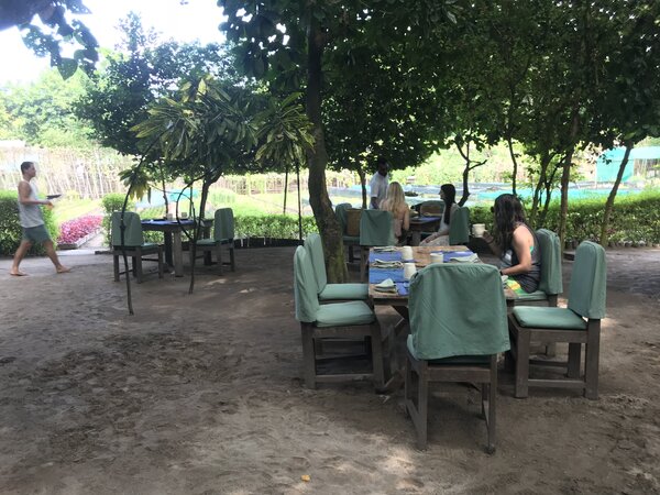 Работники острова гордятся своим огородом и, как отдельную услугу, организуют специальный обед, который состоит из продуктов, выращенных на острове. Ничего особенно потрясающего в этом обеде нет – салат из салата, помидор, лук. На десерт – немного фруктов (папайя, гуава и манго).