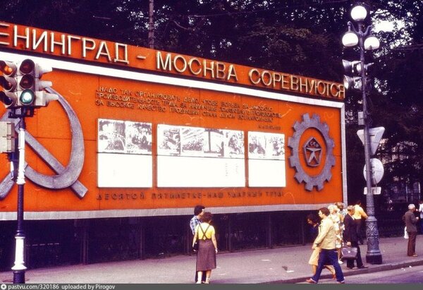 - Они были повсюду: с лозунгами вроде «Десятой пятилетке — наш ударный труд!» или «Наш девиз: Идем дорогой Ленина, дорогой Октября!». Это был неотъемлемый элемент городского пейзажа, а в праздничные дни количество агитационных плакатов и транспарантов увеличивалось вдвое, создавая особую атмосферу.