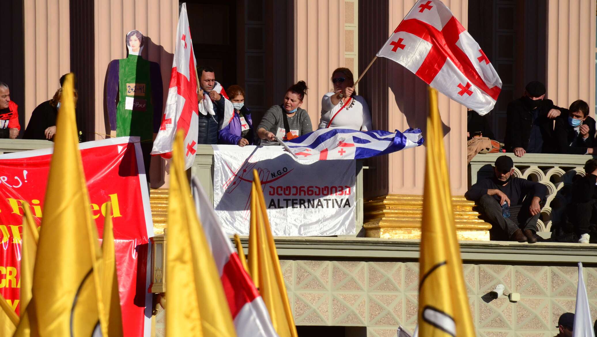 Первое, что бросилось в глаза, — возраст собравшихся. Площадь была заполнена в основном людьми старшего поколения. В отличие от оживленных акций в Тбилиси, где было много молодежи, здесь я почти не встретила молодых лиц. Это стало для меня первым и довольно сильным впечатлением.